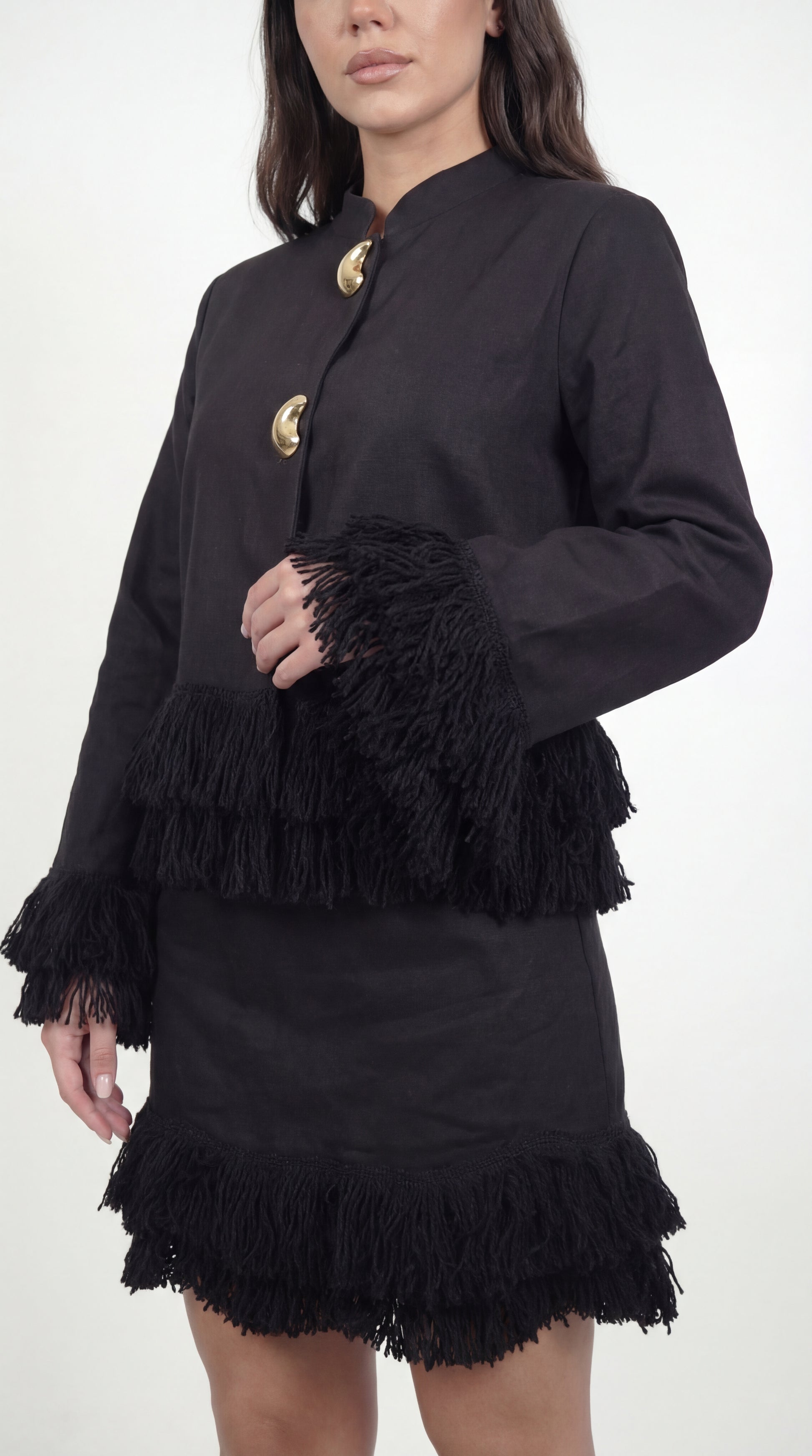 Whip Black Linen Skirt